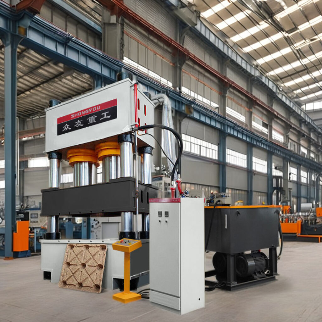 Pallet hydraulic press is a special equipment designed for pressing and molding wood chips/fibers, the core function is to press the loose wood chips (adhesive may be added) into a regular shape, a certain density and strength of the pallet by hydraulic pressure, widely used in the fields of logistics and warehousing, furniture manufacturing, building materials packaging and so on.It is widely used in logistics and warehousing, furniture manufacturing, building materials packaging and other fields.It can produce plant fiber pallet, bamboo pallet, straw pallet, coconut fiber pallet and so on.