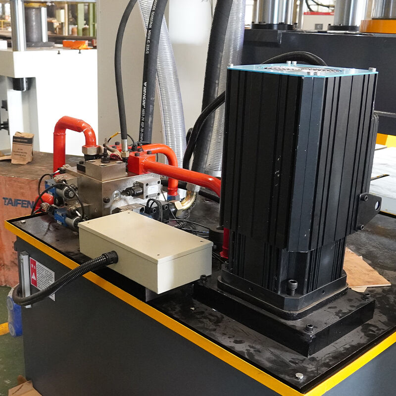 The 500-ton four-column servo-driven hydraulic press with water cooling is an energy-efficient hydraulic device powered by a servo motor and equipped with a water cooling system. It offers significant advantages including high precision, low noise, energy savings, and environmental friendliness.