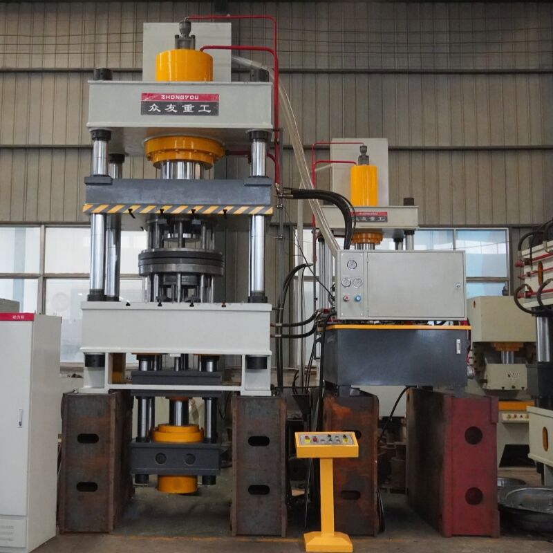 Metal sheet stretch forming: three-beam four-column stretching machine designed for stainless steel products, aluminium products and copper products industry, suitable for metal foil deep drawing and forming process, such as stainless steel pots and pans, carrying pots and pans, thermos cups, soup pots, kettles, aluminium pots and pans, copper hot pots and pans, solar energy inner liner, fire extinguisher shell troughs, cups and other products production