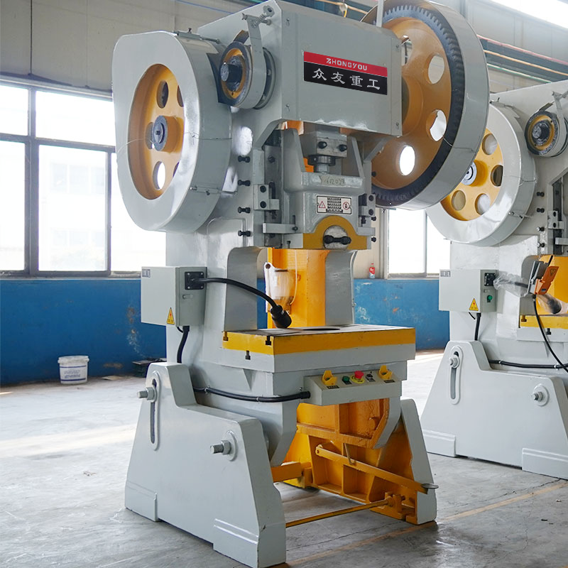 This mechanical punch press rotates the flywheel driven by the main motor, which drives the gears, crankshaft (or eccentric gears), connecting rods and other components through the clutch, converting the circular motion into the linear motion of the slider, thus generating the punching force.When the press works, the material is placed between the upper and lower molds, and the up and down movement of the slider exerts pressure on the material, causing it to produce plastic deformation, and completing the processing of cutting, punching, and stretching.