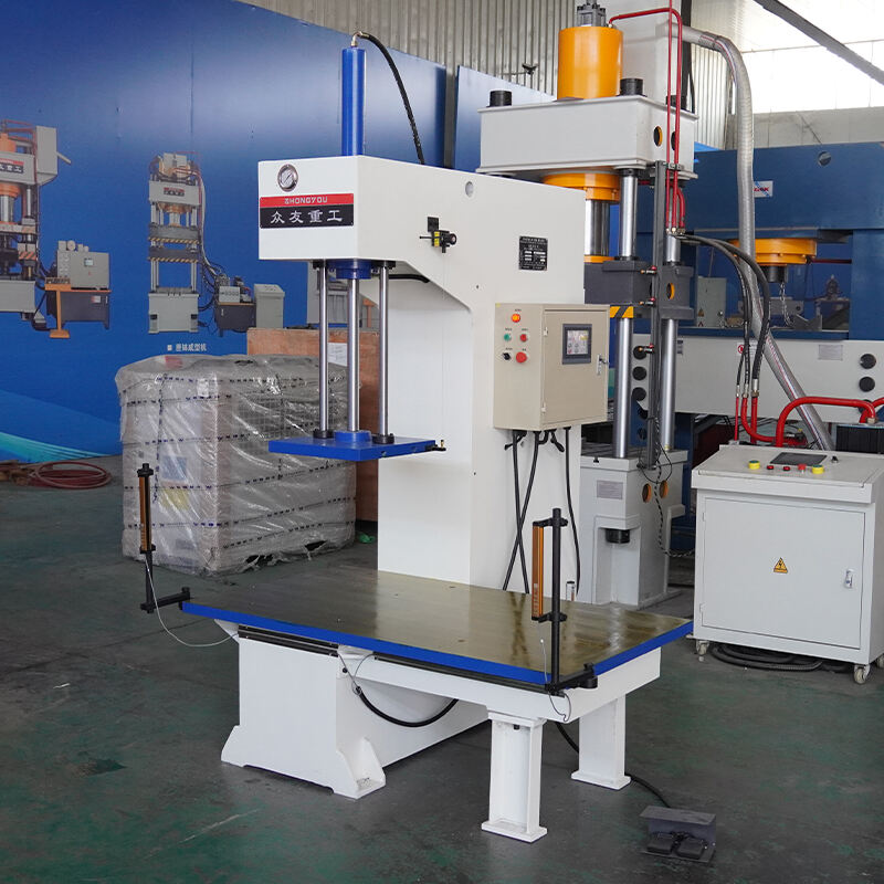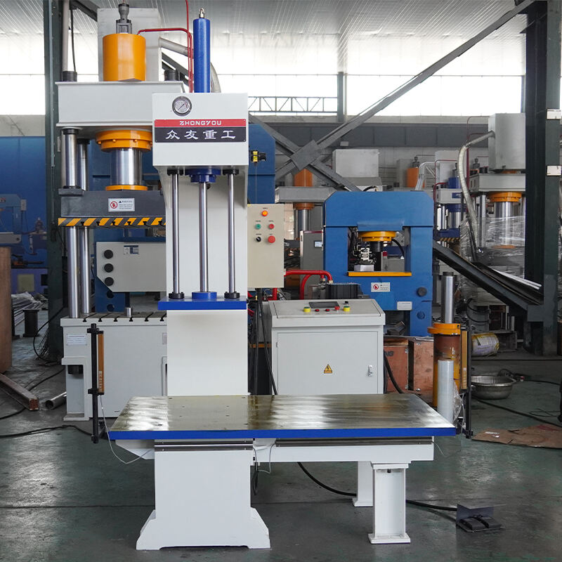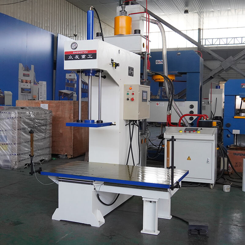 Single-arm hydraulic press adopts C-type single-arm structure, the machine body consists of a single column with upper and lower cross beams, forming an open operation space.Its working principle is based on Pascal's law, through the hydraulic pump to the integrated valve block, through the check valve and relief valve distribution to the upper or lower chamber of the cylinder, drive the piston movement to realize the pressing, stretching and other processes.